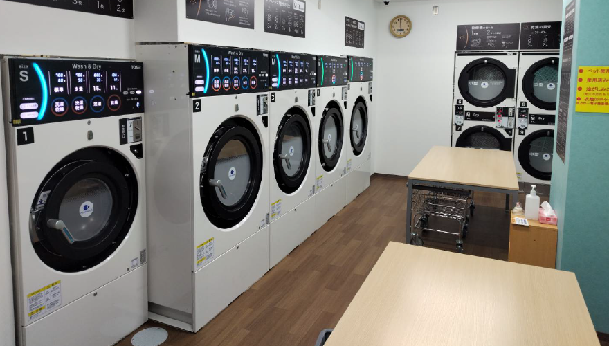 緑橋駅から1分の距離にある24時間営業のコインランドリー「あらいぐまのコインランドリー」です。大型の洗濯乾燥機から小型の物まで、洗濯の量に応じてお選びいただけます。また乾燥機専用機やスニーカー専用のランドリーも設置しています。